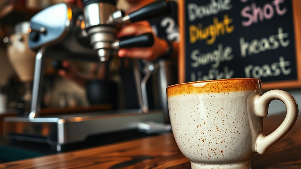 Getting familiar with café slang and brew terms helps you communicate confidently with baristas and understand your coffee better. Knowing phrases like “double shot,” “pulled shot,” or “skinny latte” allows you to customize drinks and appreciate the craft behind each one. Recognizing espresso art and brewing techniques signals quality and skill. With a grasp of these terms, you’ll enjoy your coffee experience more—stick around to discover even more tips that reveal the true depth of coffee culture.