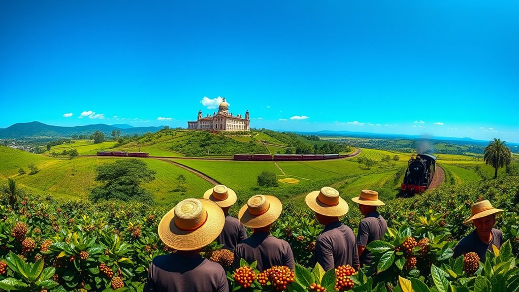 Brazil’s rise as a global power is deeply rooted in its history of empire-building, slavery, and the growth of coffee plantations. You’ll see how Portuguese colonization disrupted indigenous societies, causing cultural and environmental changes. The expansion of coffee farming cleared native forests, pushed indigenous communities off their lands, and transformed ecosystems. These historical forces shaped social inequalities and environmental challenges that still influence Brazil today. If you stay curious, you’ll uncover how these past events continue to impact Brazil’s future.