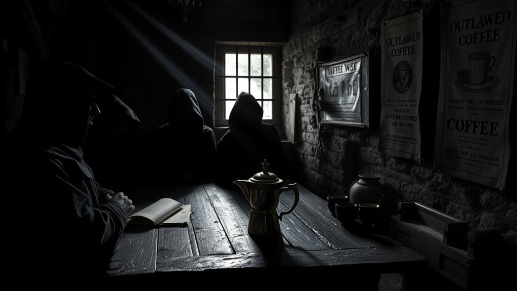 Imagine trade routes trembling like a leaf in a storm—that’s what coffee bans caused. You’d see trade disruptions ripple across continents, forcing smugglers to craft secret networks that defied authorities. These disruptions shifted global commerce, making coffee a prize worth risking everything. Your daily cup’s journey became a daring tale of clandestine moves, showing how bans transformed trade, fueling innovation and resilience among those who refused to give up their beloved brew.