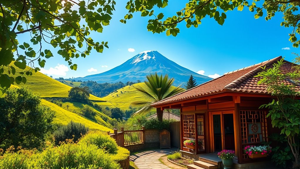 While Panama’s highland towns of Boquete and Volcán are renowned for their lush landscapes, coffee culture, and scenic hikes, there’s no known connection to Geisha as a home. You might be thinking of the famous Geisha coffee variety, often produced in these regions. If you’re curious about how this coffee is grown or the area’s natural scenery, keep exploring to discover more fascinating details about Panama’s charming mountain towns.