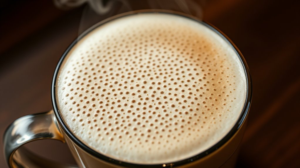 Now that you’ve unveiled the secrets of microfoam texture, you’re on the verge of transforming your coffee game entirely. With every swirl and tip, you’ll master a silky, velvety foam that could make even the most hardened barista bow in awe. Don’t settle for anything less than perfection—your latte art will become legendary, and your mornings will never be the same. Embrace the cues, dodge the mistakes, and watch your microfoam elevate you to coffee greatness!