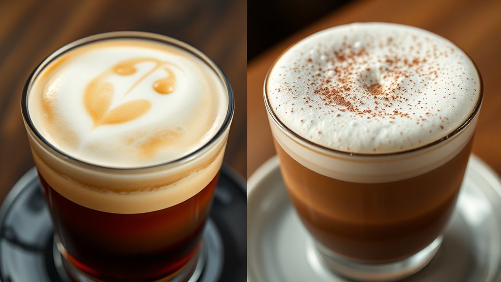 Understanding these differences can help you choose the right style based on your mood or preference. If you’re craving something smooth and comforting, a wet cappuccino’s milk texture and balanced flavor profile will satisfy that desire. Conversely, if you want a more pronounced coffee taste with a thicker foam cap, a dry cappuccino is your go-to. The proportions of milk to espresso directly influence the overall experience, so knowing what to expect can elevate your appreciation for this classic espresso-based drink. Additionally, the milk texture in each type plays a crucial role in how the flavors are perceived, making it an important factor to consider when ordering. Whether you prefer the creamy harmony of a wet cappuccino or the bold intensity of a dry one, recognizing how milk texture and flavor profiles interplay will help you order with confidence and truly enjoy every sip.