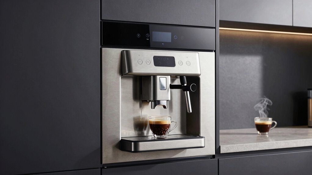 You can expect your built-in grinder coffee maker to last around 5 to 10 years, depending on machine durability and maintenance frequency. Regular cleaning and descaling help extend its lifespan, while neglecting maintenance can lead to early breakdowns. Investing in quality models and following manufacturer guidelines guarantees you get the most out of your machine, making it a reliable part of your daily routine for years to come.