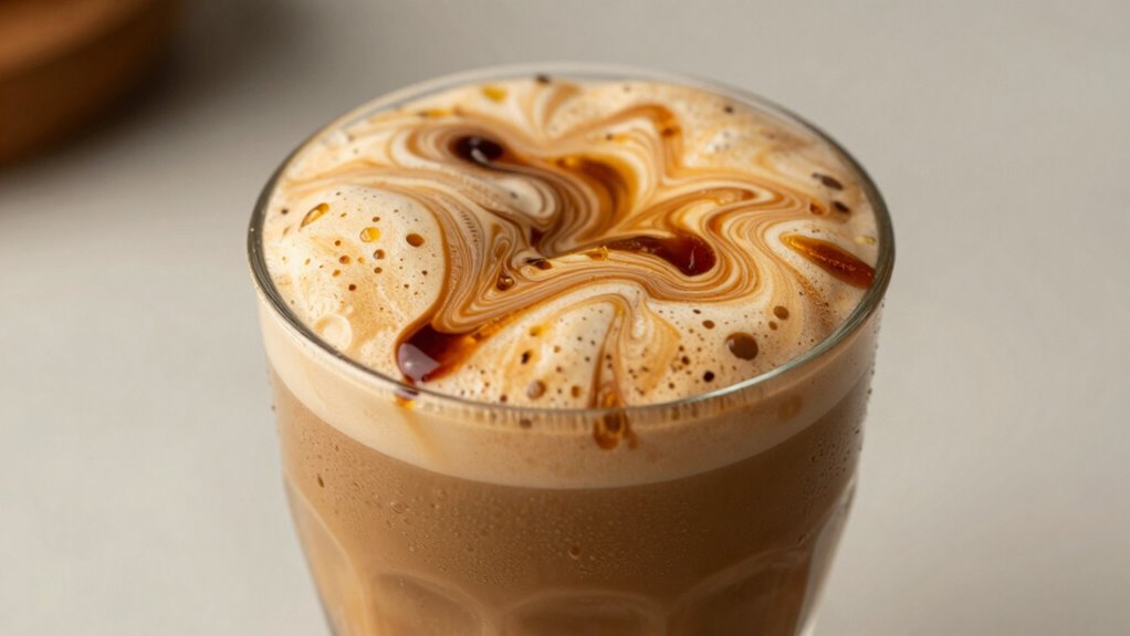 Yes, you can swap honey for brown sugar in your shaken espresso. Think of honey as a golden river flowing into your drink, adding a smooth sweetness. For flavor variations, honey offers a richer, floral note compared to brown sugar’s caramel tones. When using honey, reduce other sweeteners slightly, as honey’s sweetness is more concentrated. It’s a delightful way to experiment with sweetener alternatives and customize your beverage to suit your taste.