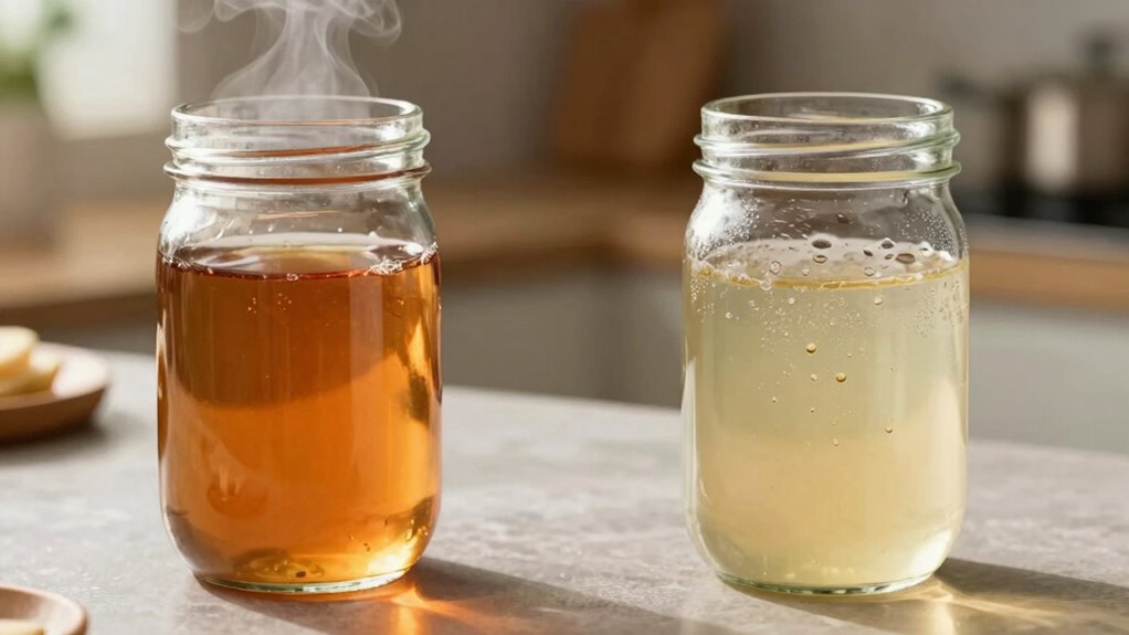 Choosing between room temperature and refrigerated steeping definitely impacts your infusion’s flavor, aroma, and timing. At room temperature, flavors infuse quickly and result in a bolder, more intense taste, but it requires careful monitoring to prevent over-extraction. Refrigeration slows down the process, creating a subtler, more nuanced flavor while offering greater control and less risk of bitterness. Knowing these differences helps you tailor your steeping method. Keep exploring to discover which approach best suits your preferences and schedule.