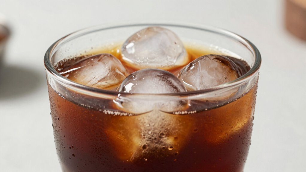 Ever wondered how to serve cold brew on ice for the perfect, invigorating drink? The trick isn’t just tossing some ice into your glass; it’s about maintaining the rich, smooth flavor of your cold brew while keeping it crisply cold. To do that effectively, you need to pay attention to flavor infusion and ice cube quality. When you use high-quality, large ice cubes, they melt more slowly, preventing your cold brew from becoming watered down too quickly. Larger cubes have less surface area relative to their volume, which means they chill your drink without diluting it as fast as smaller, crushed ice would. This ensures every sip remains full-bodied and flavorful.