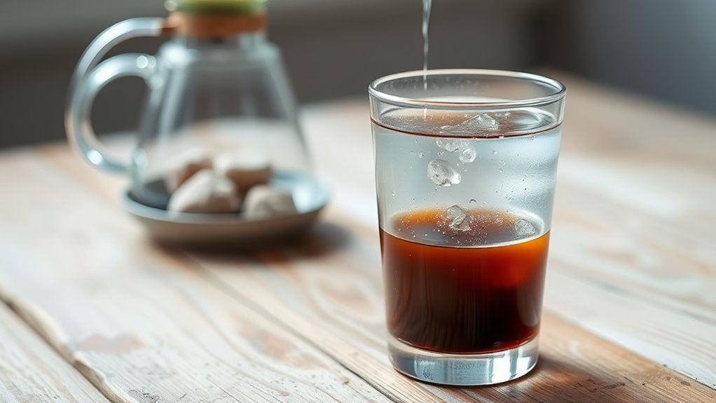 Think of your cold brew as a symphony, where mineral balance sets the harmony. For the best taste enhancement, aim for a balanced ratio of calcium, magnesium, and sodium. Too much calcium can dull flavors, while magnesium boosts brightness. Keep sodium moderate to avoid overpowering. By fine-tuning these ratios, you’ll craft a smooth, vibrant cold brew that sings with every sip.