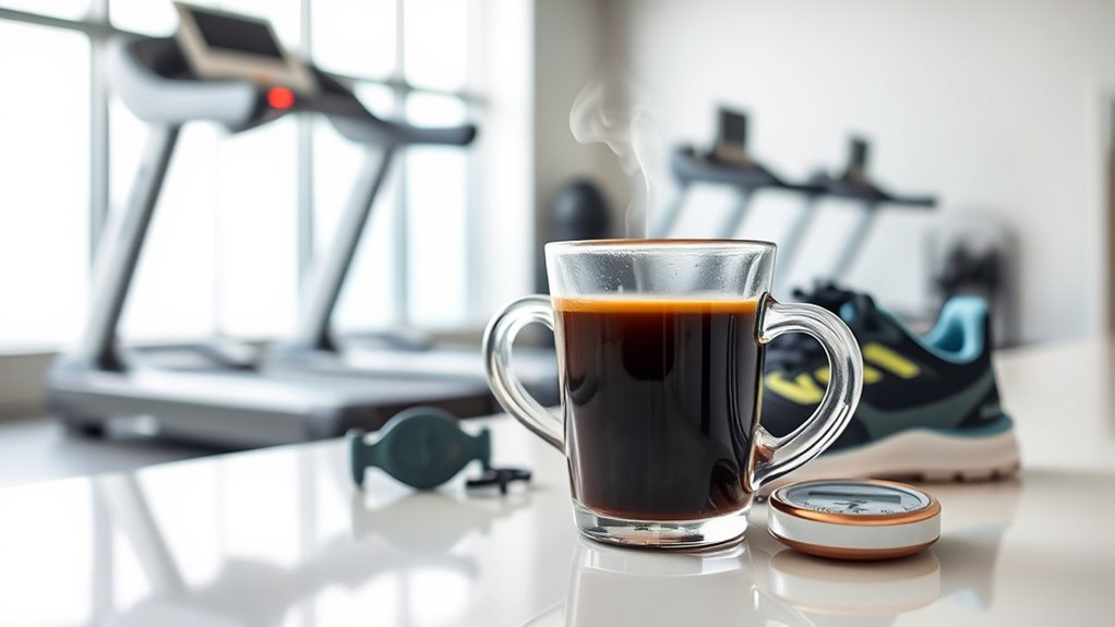 Regarding hydration effects, caffeine has often been misunderstood as a diuretic that causes dehydration. However, recent evidence suggests that moderate caffeine intake doesn’t noticeably affect hydration status during exercise. When you drink caffeinated beverages, your body absorbs the fluid, and it helps maintain hydration just as water does, especially if your intake is consistent and within reasonable limits. That said, high doses of caffeine might still increase urine production in some individuals, so if you’re engaging in prolonged or intense activities, it’s wise to monitor your fluid intake to prevent dehydration. Proper hydration is essential for optimal performance, and knowing that moderate caffeine consumption doesn’t necessarily compromise your hydration can be reassuring.