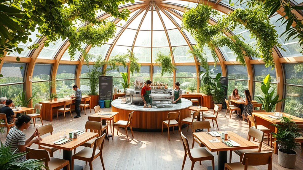 Circular cafés show that zero-waste practices can work when you focus on sustainability, like using reusable or biodegradable packaging, encouraging customers to bring their own cups, and partnering with local suppliers. They also prioritize composting food scraps and coffee grounds, transforming waste into valuable resources for the community. By viewing waste as a resource and promoting mindful consumption, they create a positive environmental impact. Keep exploring to discover more about how these cafés are redefining eco-friendly practices.