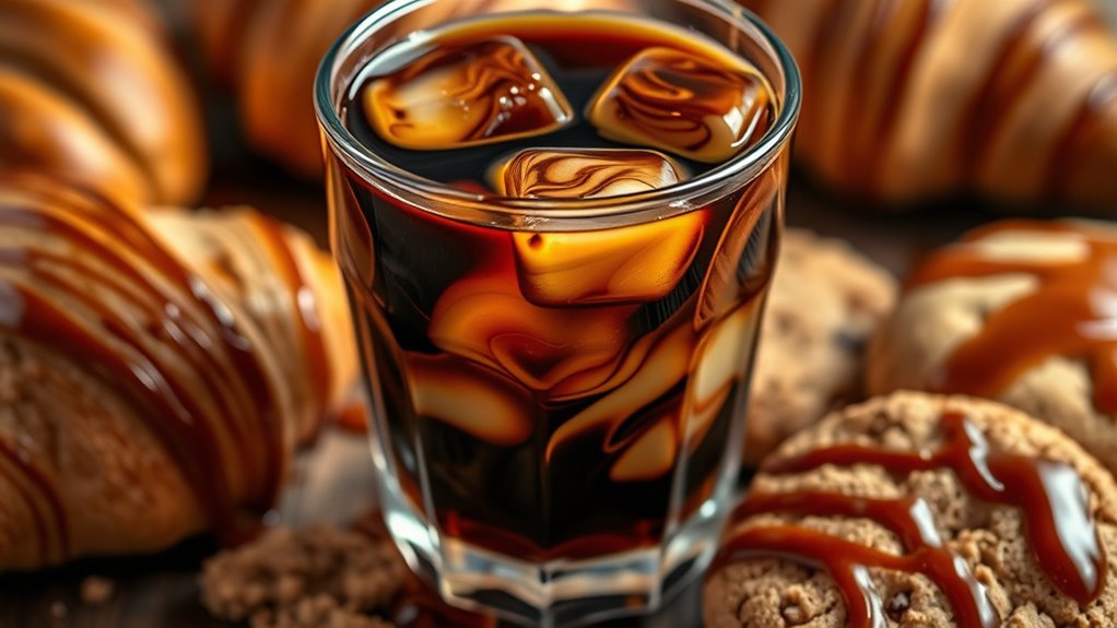To use leftover coffee well, try freezing it into ice cubes for a quick, flavorful addition to iced drinks without watering them down. You can also make coffee syrup by simmering leftovers with sugar, perfect for sweetening desserts or drinks. Additionally, incorporate leftover coffee into baked goods like cakes and muffins for added depth of flavor. These ideas help reduce waste and enhance your recipes—keep exploring to discover even more creative ways to make the most of leftover coffee.