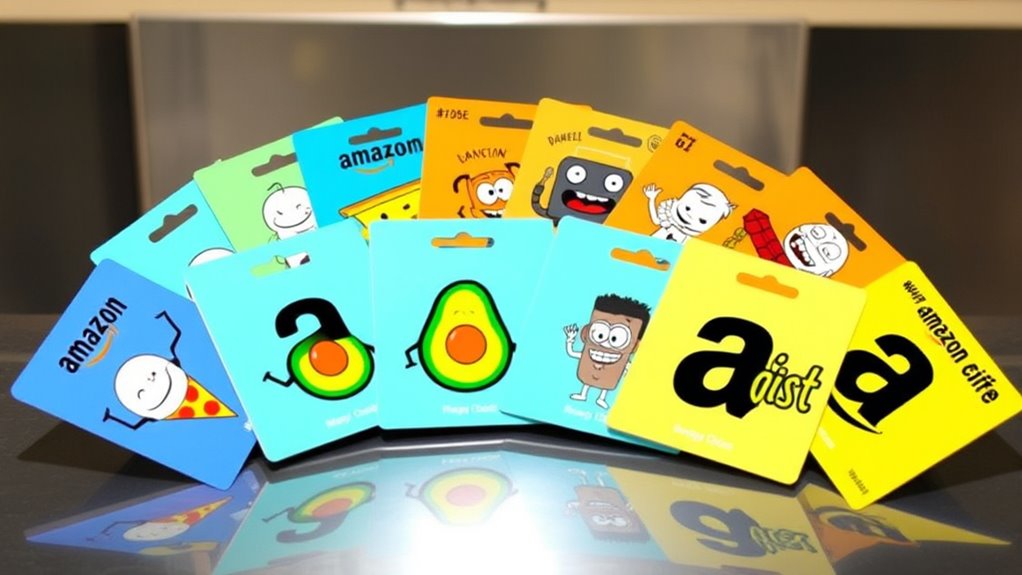 If you’re looking to turn your Amazon E-Gift Card into a hilarious surprise, I’ve found some funny designs that really make gifting memorable. From clever puns to playful characters, these designs add humor and personality to your gift. Whether it’s seasonal jokes or witty graphics, these options guarantee smiles. Keep exploring, and you’ll discover how to choose the perfect funny design to make your gift truly stand out and get plenty of laughs.