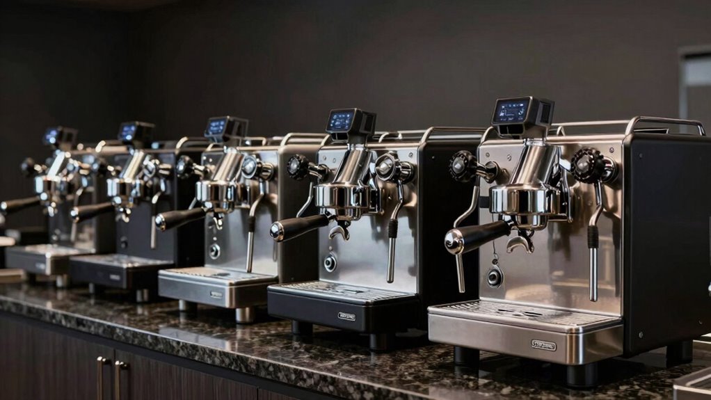 If you’re looking for the 15 best E61 group head espresso machines for 2026, I can help you find top choices that combine durability, precise water flow control, and compatibility with accessories like bottomless portafilters and upgraded gaskets. These machines support various brewing techniques and offer features like temperature monitoring and pressure gauges for perfect shots. Keep going, and you’ll discover detailed insights on selecting the best model for your needs.