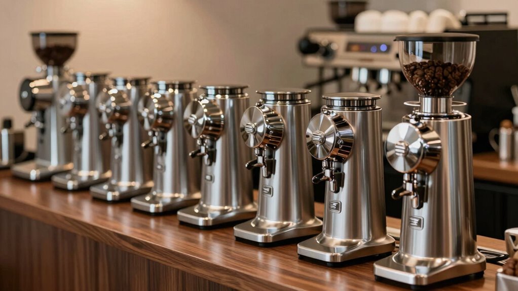 Choosing the right espresso grinder for light roasts can elevate your coffee experience considerably. Did you know that a consistent grind size can improve extraction by up to 30%? Investing in quality equipment guarantees you get the most flavor out of your beans. Remember, a good grinder isn’t just about precision—it’s about revealing the full potential of your light roast, making every cup truly exceptional.