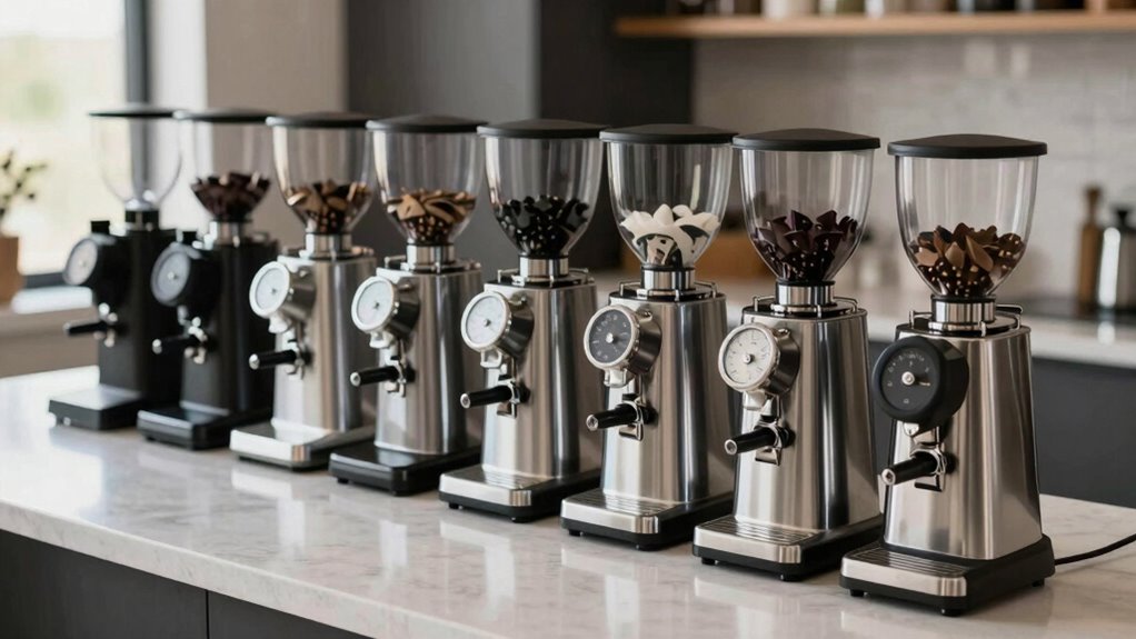 Choosing the right espresso grinder under $1000 can truly elevate your coffee game. Did you know that experts recommend using a grinder with at least 40 grind settings for ideal extraction? Whether you prefer a touch screen, conical burrs, or single-dose convenience, there’s a perfect grinder for you. Investing in quality equipment not only improves flavor but also saves you money in the long run—so go ahead, elevate your brewing experience today!