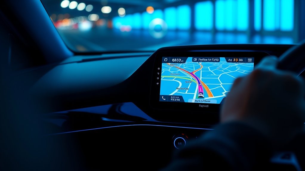 Choosing a GPS navigation system that’s easy to use can make a big difference in how smoothly your drives go. An intuitive interface with clear menus and icons helps you operate it effortlessly, reducing distractions. Responsive touchscreens with high-resolution displays make it simple to view maps and input destinations, even in bright sunlight. Voice command features allow hands-free operation, boosting safety and convenience. Preloaded maps with automatic updates keep your directions accurate without manual effort, saving you time. Well-designed routing options and customizable vehicle profiles let you choose straightforward, tailored routes without hassle. All these features combine to create a user-friendly experience, ensuring you stay focused on the road while easily accessing the navigation tools you need.