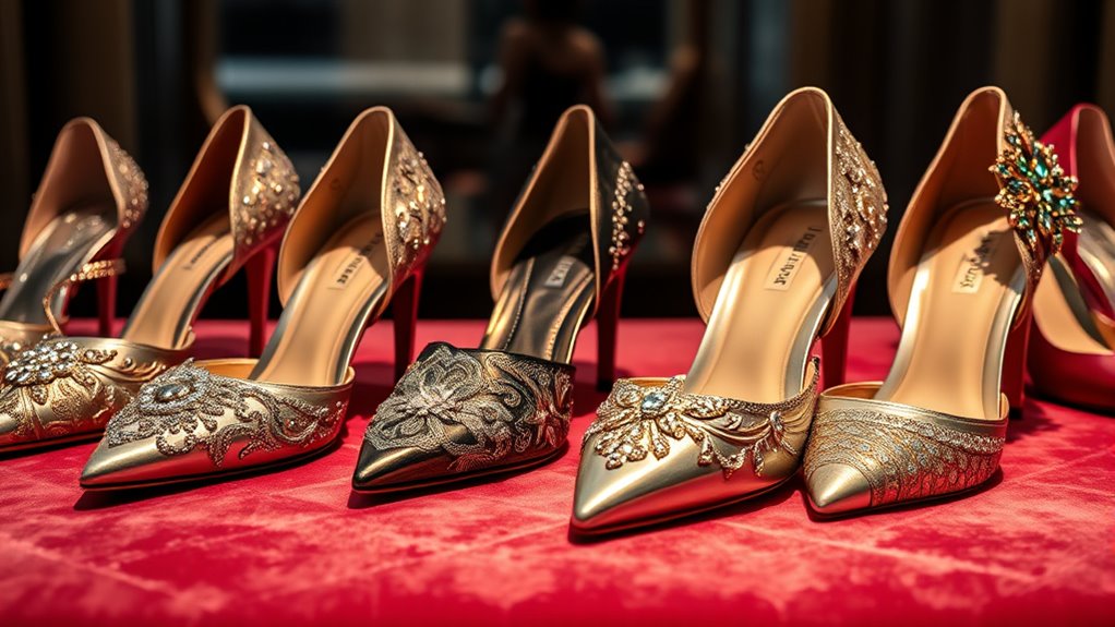 Choosing high-end women’s shoes requires attention to material quality and durability, as these factors directly influence both appearance and longevity. Premium materials like genuine leather, suede, or silk not only look luxurious but also stand up better over time. Skilled craftsmanship, including precise stitching and sturdy soles, further ensures your shoes last longer and maintain their shape. In contrast, shoes made with cheap adhesives or low-quality hardware tend to wear out quickly and lose their appeal. Proper care, such as conditioning leather and avoiding moisture or extreme temperatures, extends their lifespan. Ultimately, a well-made shoe balances beauty with resilience, often reflected in positive reviews and consistent performance. Prioritizing these aspects helps you invest in footwear that stays beautiful and durable season after season.