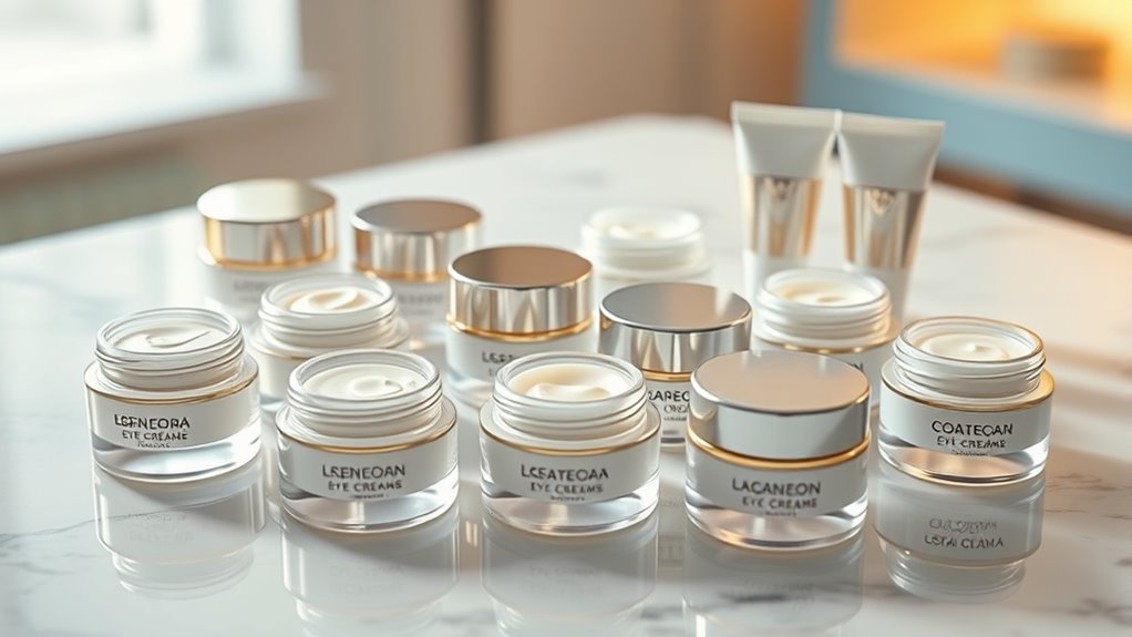 If you’re looking for the best luxury eye creams that really work, I’ve found some top options that target dark circles, puffiness, and signs of aging effectively. These formulas use ingredients like caffeine, retinol, hyaluronic acid, and peptides to deliver visible results quickly and over time. They’re suitable for sensitive skin and often come with benefits like hydration and brightening. Keep exploring, and I’ll share more about these standout products that can transform your eye area.