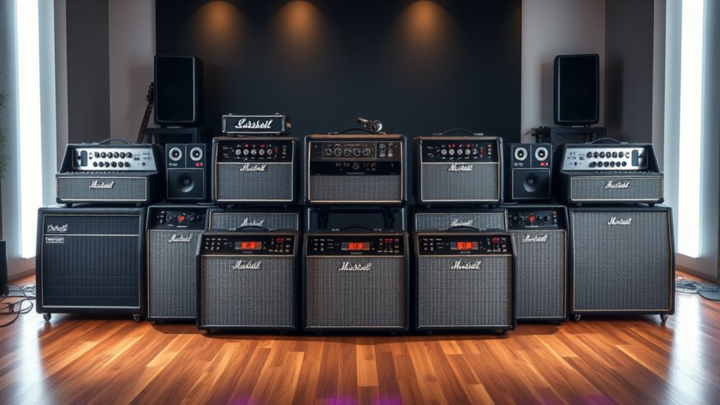 If you’re searching for the top luxury guitar amplifier combos of 2025, I’ve got you covered. From the Fender Mustang LT25 and Champion II bundles to high-end models like the Fender Hot Rod Deluxe IV and Blues Deluxe Reissue, these amps offer premium sound, versatility, and durability. They’re perfect for serious players seeking studio-quality tones and reliable performance. Keep exploring, and you’ll discover the key factors that make these amps stand out and elevate your sound.