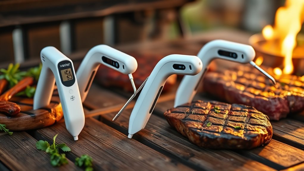 Choosing the right meat thermometer can make all the difference—did you know that 70% of grillers admit to overcooking their meat? With options like the Meater Plus and others on this list, you’ll get precise readings and better results every time. Investing in a quality thermometer not only boosts your confidence but also guarantees perfectly cooked meals. Don’t settle for guesswork—trust a reliable thermometer and elevate your grilling game today!