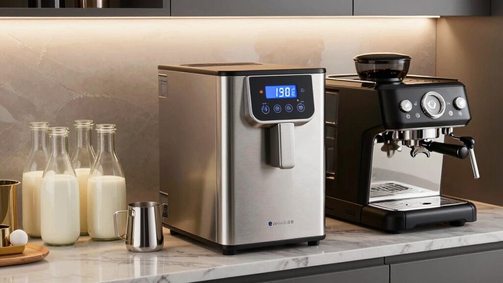 Choosing the right capacity for your milk cooler depends on how much milk you typically use each day. If you make multiple drinks or serve several people, a larger cooler—around 5 to 15 liters—can store enough milk to meet demand without frequent refills. This ensures you always have fresh milk ready for lattes, cappuccinos, or other beverages. On the other hand, if your space is limited or you only prepare drinks occasionally, smaller units of 0.5 to 2 liters might be sufficient and more convenient. It’s also helpful if the cooler has a clear level indicator, so you can easily monitor milk levels and avoid shortages. Ultimately, selecting a capacity that matches your usage habits helps maintain freshness and keeps your coffee station running smoothly.