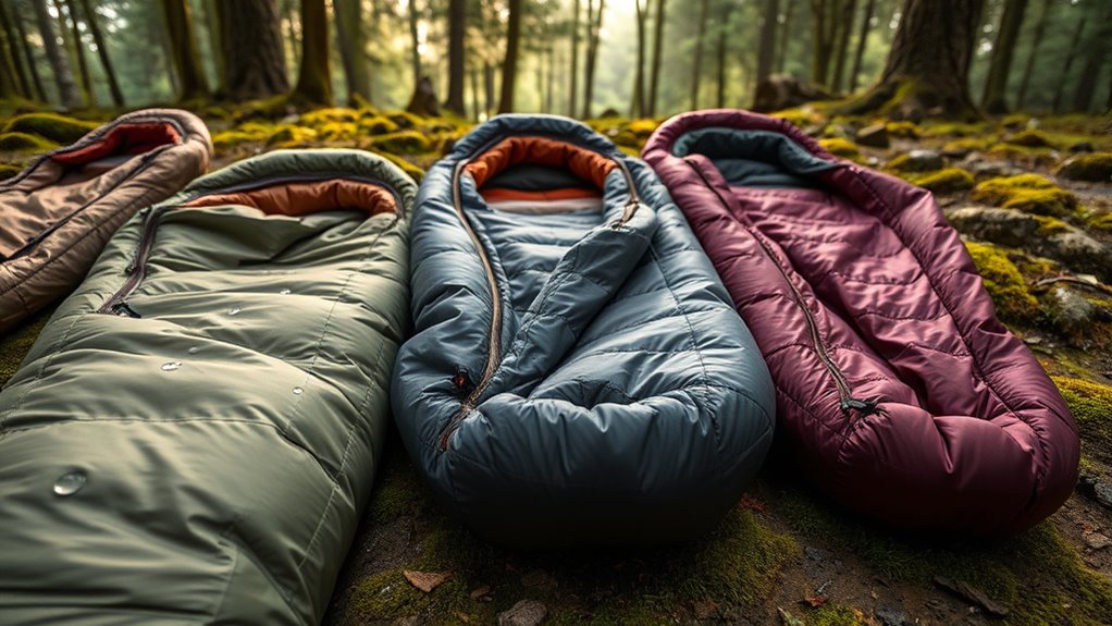 Ever wondered how to choose a backpacking sleeping bag that keeps you warm without overheating? Temperature ratings are key—they tell you the lowest temperature where the bag keeps an average sleeper comfortable. Most bags are labeled for specific seasons: summer (above 60°F), three-season (20°F to 32°F), or winter (below 20°F). These ratings are based on standardized tests, but individual comfort varies depending on metabolism, sleep habits, and clothing layers. To stay warm enough, pick a bag with a rating at least 10°F lower than the coldest environment you expect. Also, understanding the difference between “limit” and “extreme” ratings helps you assess safety and comfort. Choosing the right temperature rating guarantees you stay warm without sacrificing sleep quality.