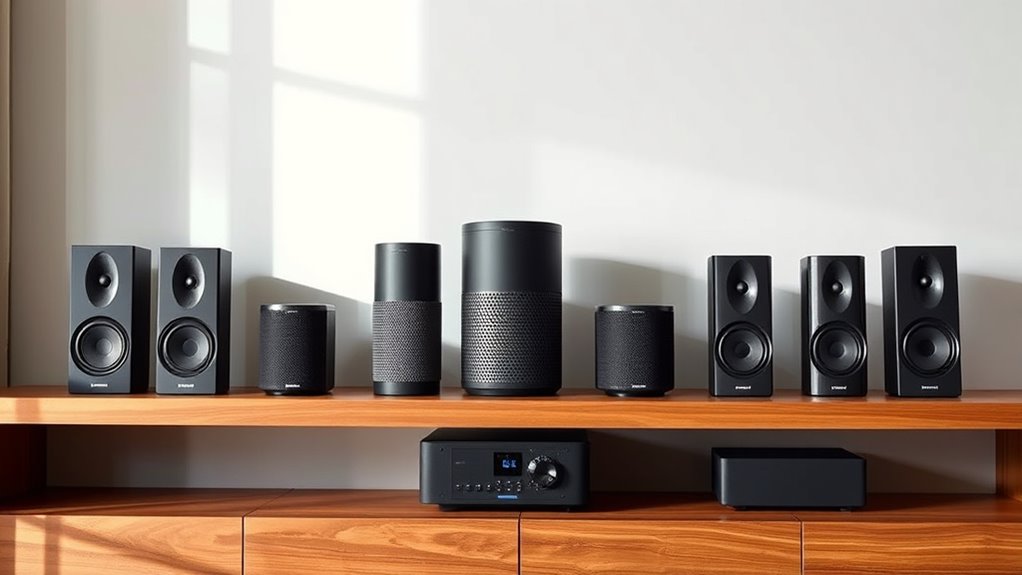 If you’re looking for the 15 best premium Echo Studio speaker systems for exceptional sound in 2025, I’ve got you covered. From portable Bluetooth options like the Harman Kardon Onyx Studio 9 to high-quality bookshelf speakers like the Edifier R1280Ts, these systems feature advanced acoustics, sleek designs, and versatile connectivity. They’re perfect for both indoor and outdoor use. Keep exploring to discover the top choices and how they can transform your listening experience.