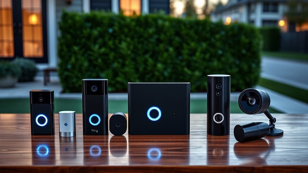 Choosing a security bundle that’s easy to install can save you time and frustration, especially if you’re not tech-savvy. Most premium Ring security kits feature plug-and-play components, allowing for quick setup without professional help. They come with mounting hardware and adhesive options, so you can place sensors on walls or flat surfaces with ease. The setup process typically involves connecting devices via Wi-Fi, Z-Wave, or Ethernet, guided step-by-step through user-friendly mobile apps. Many kits include pre-registered sensors, which cut down on initial configuration time. Clear instructions, visual guides, and app prompts make it simple for first-time users to complete installation correctly and efficiently. Overall, these features help you get your home protected quickly without hassle.