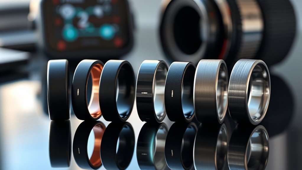 If you’re searching for the best smart rings in 2025, I recommend considering options like the Oura Ring 4, RingConn Gen 2, and several stylish models crafted for fitness and health tracking. These rings combine advanced sensors, sleek designs, and long battery life to monitor everything from sleep to activity accurately. They’re durable, water-resistant, and compatible with iOS and Android. Keep exploring to uncover which model fits your lifestyle perfectly and how they can enhance your wellness journey.