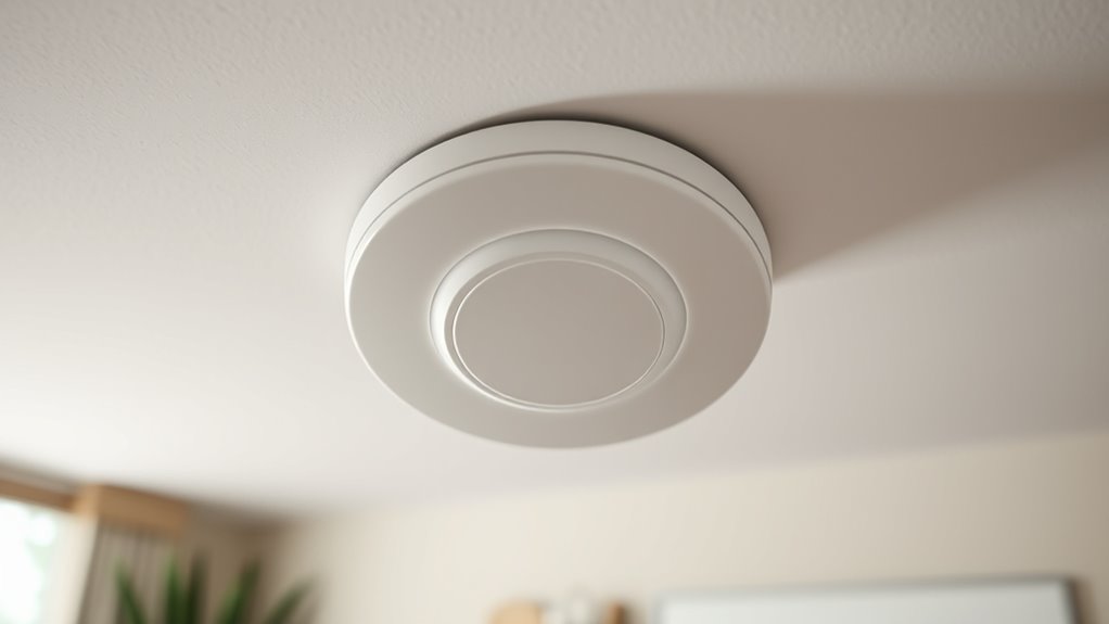 Choosing the right smart smoke and CO detector depends heavily on its sensor technology, which directly impacts its ability to detect hazards accurately and quickly. Photoelectric sensors excel at spotting smoldering fires early, while electrochemical sensors provide precise carbon monoxide measurements. Advanced sensors deliver faster response times, often cutting detection latency by over 25%, which is vital during emergencies. Reliable sensors also minimize false alarms triggered by cooking, steam, or household chemicals, ensuring alerts only activate when real dangers are present. Long-lasting sensors, with an 8-10 year lifespan, maintain accuracy over time, reducing replacements and ensuring consistent safety. Proper sensor placement and integration are key for ideal detection, especially in areas prone to false alarms or specific hazards.